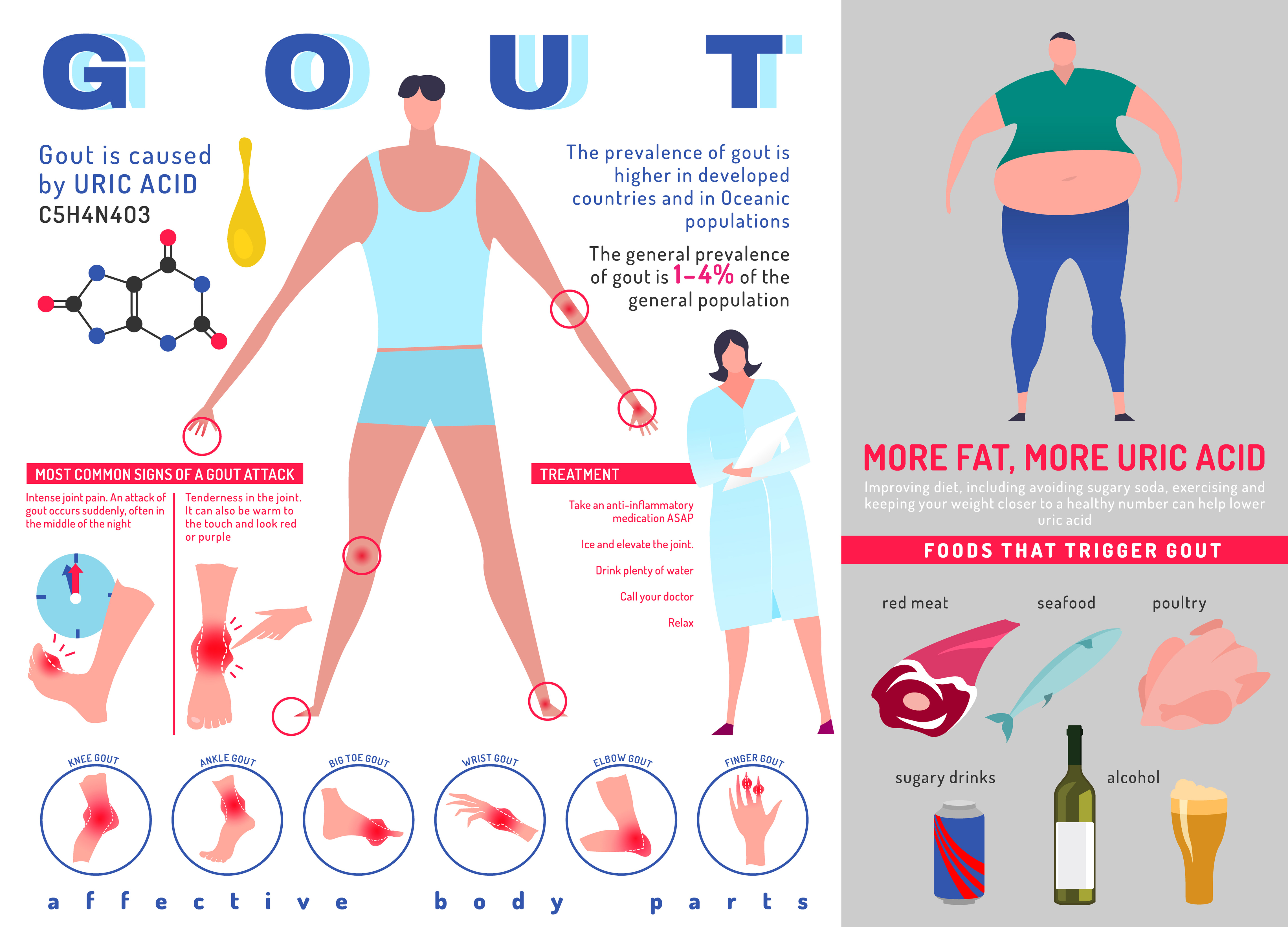 Med behandling kan man forebygge smertefulde anfald og beskytte leddene mod skader. Ubehandlet urinsyregigt kan føre til kroniske ledskader, dannelse af tophi og nyreproblemer som nyresten.